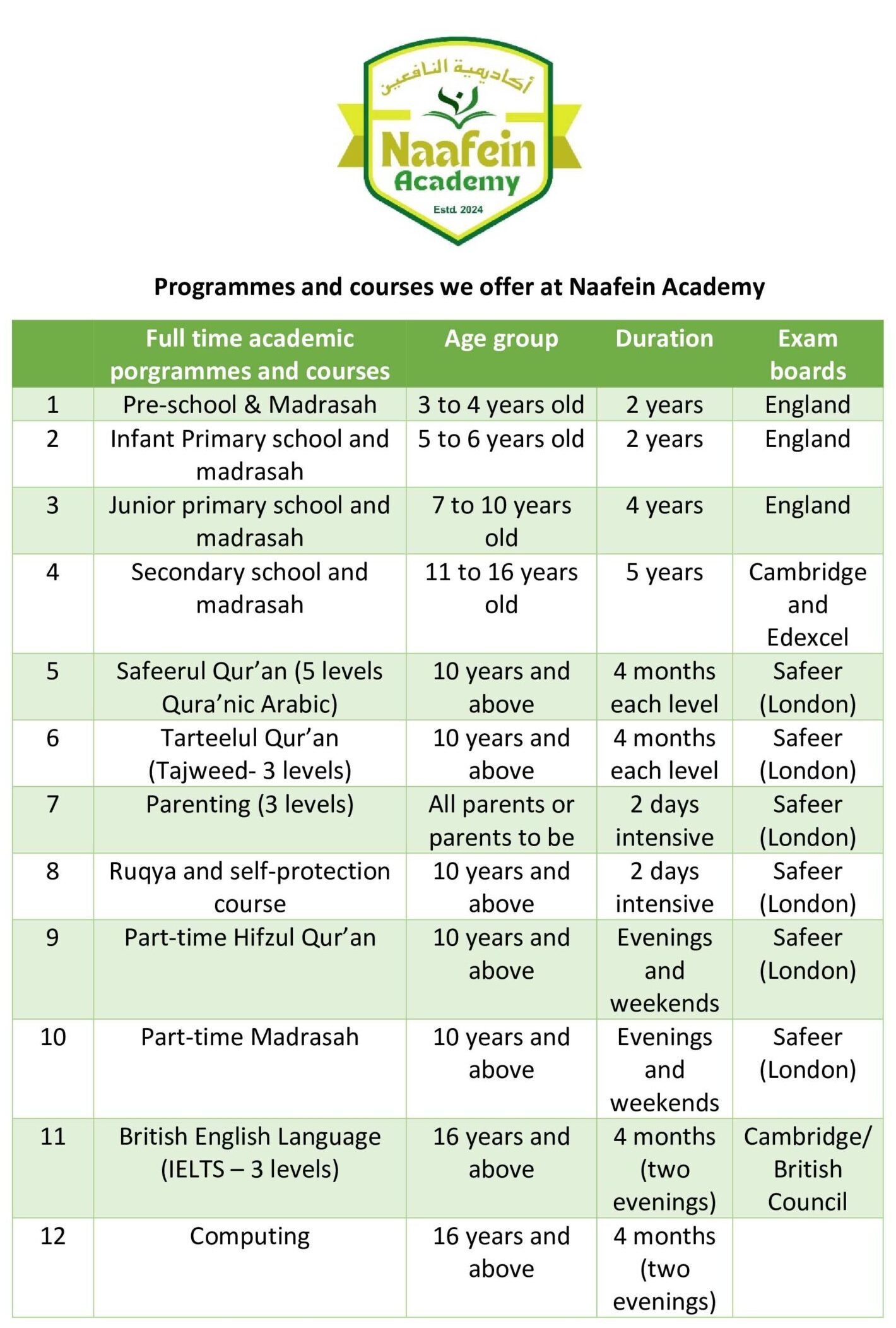 British English Curriculum School, full time Madrasah with Hifzul Qur'an and understanding its meanings