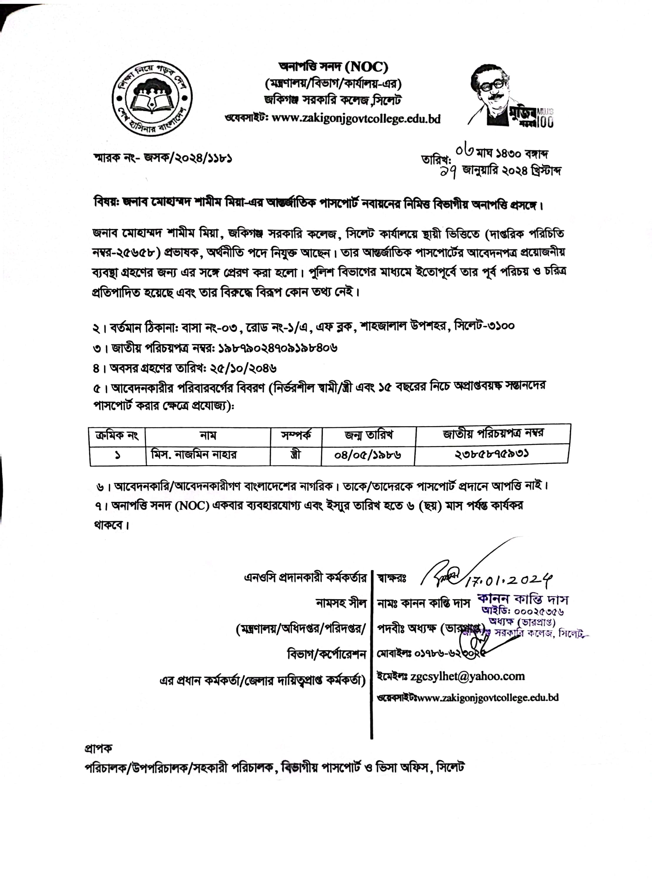 3 জনাব মোহাম্মদ শামীম মিয়া-এর আন্তর্জাতিক পাসপোর্ট নবায়নের নিমিত্তে বিভাগীয় অনাপত্তি প্রসঙ্গে। Jan 17, 2024 New Published