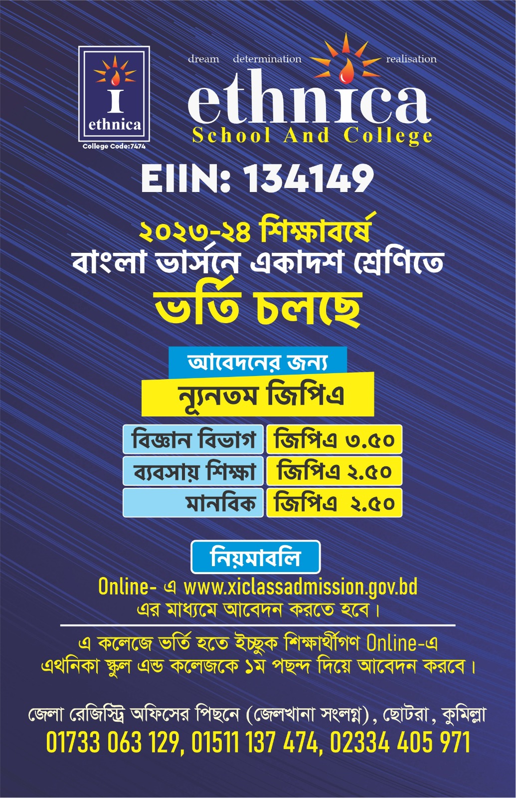 ethnica School And College ethnica School, formally known as ethnica An English Version School under Comilla Education Board is the only English Version School in Comilla City Corporation of Bangladesh with the provision for JSC,SSC And HSC in English Version.The school offers education ranging from elementary level to Higher Secondary level (Play Group -HSC). Read More →